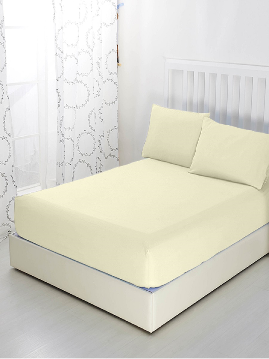 Простыня на резинке натяжная трикотажная однотонная. Простынь изготовлена из качественного трикотажного хлопкового полотна средней плотности 125 г/м2. Экологичная ткань - 100% хлопок, натуральная и гипоаллергенная. Постоянный контакт с кожей не вызывает раздражений и дискомфорта даже у детей. Обладает дышащим эффектом: летом будет прохладно, а зимой тепло. Трикотаж мягкий и очень приятный на ощупь. Благодаря прочной резинке, плотно облегает, не скатывается и не сминается во время сна. Прослужит долгое время даже после многочисленных стирок. Семейное постельное белье с натяжной простыней подойдет на кровати разных размеров. Имеет полноценный бортик 20 см и подходит для матрасов высотой до 15 см. Чтобы определить нужный размер простыни, следует измерить ширину и длину спального места по крайним точкам. Изделие прекрасно впишется в интерьер любой комнаты дома и дачи. На выбор представлено множество элегантных пастельных и ярких цветов. Рекомендуется стирать в стиральной машине при температуре до 40 С в режиме "д